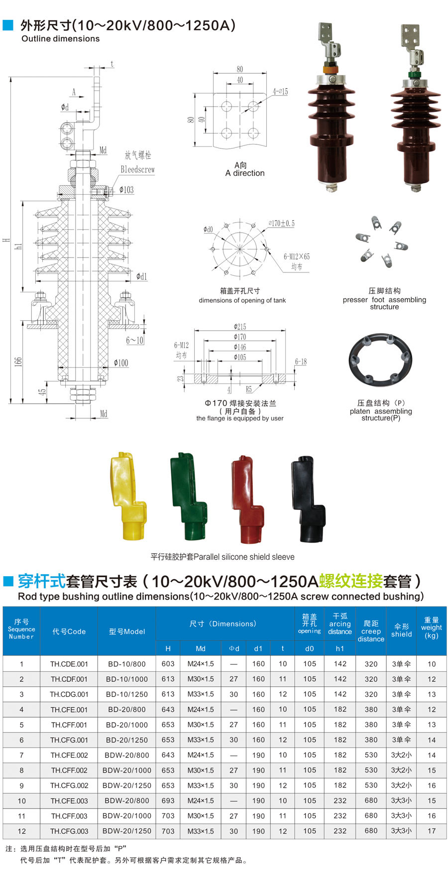 DIN standard bushing 1-52kV