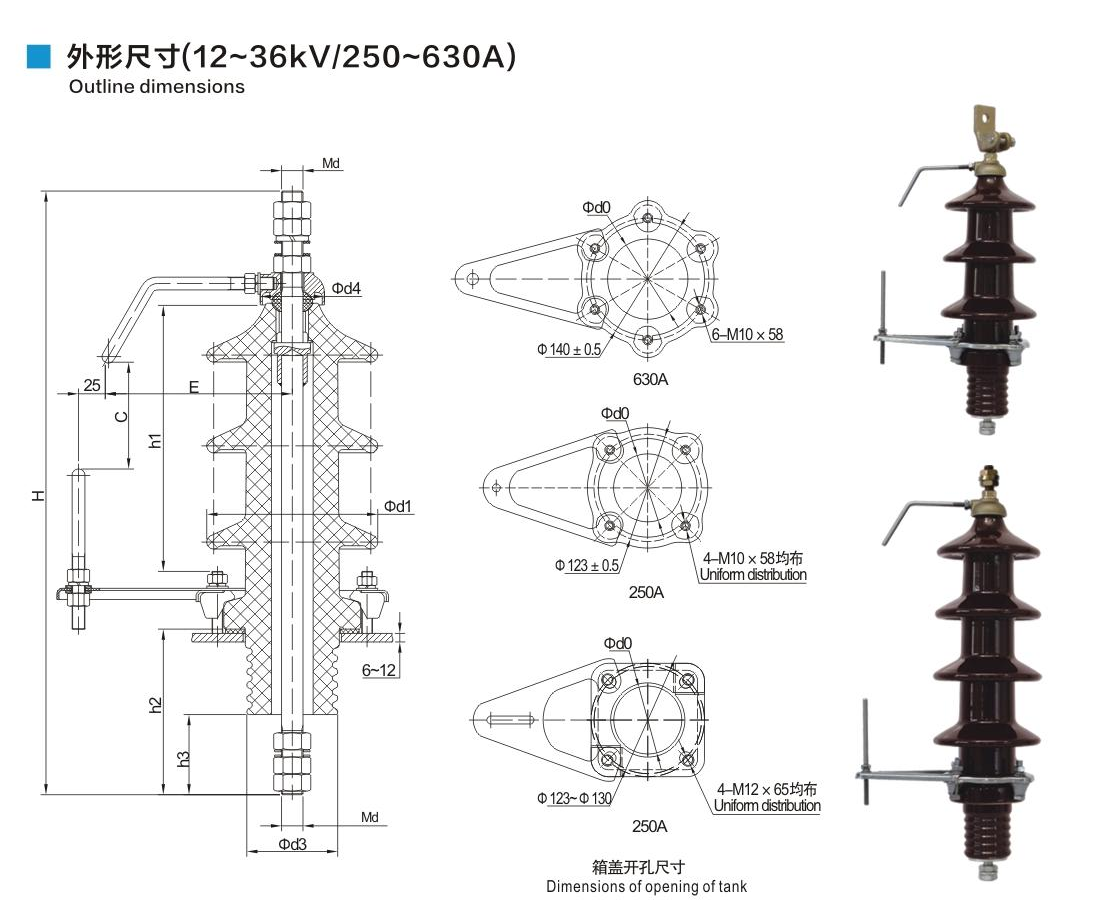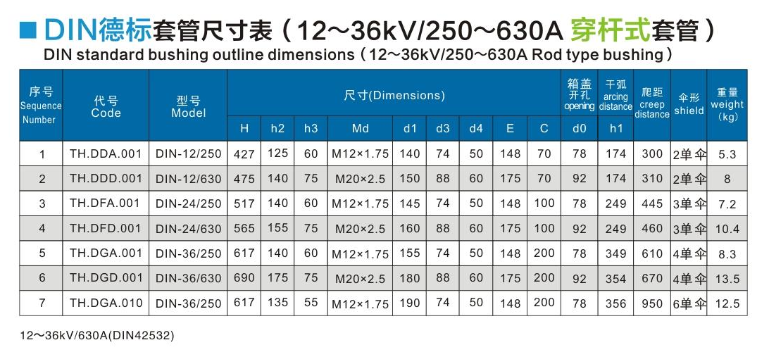 DIN德標(biāo)套管12~36kV/250~630A穿桿式套管