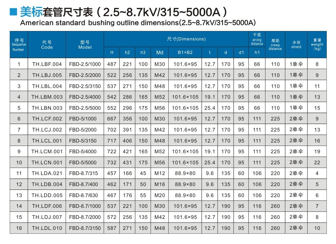 美標(biāo)套管2.5~8.7kV/315~5000A